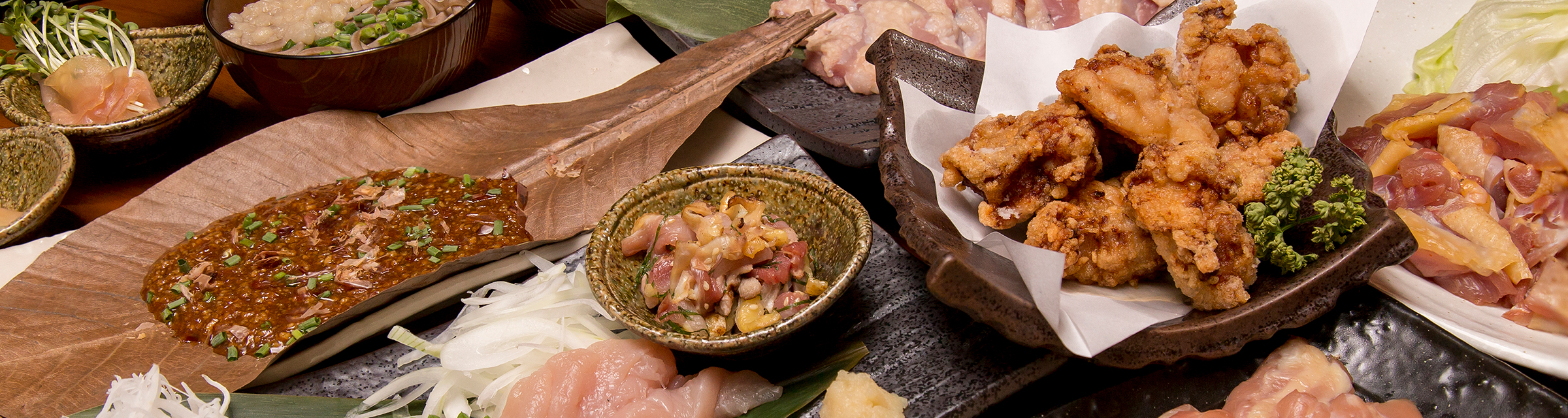 宮崎県産ブランドの「みやざき地頭鶏(じとっこ)」の炭火焼とタタキのコース。上品な旨味が特徴的なおすすめの地鶏です。