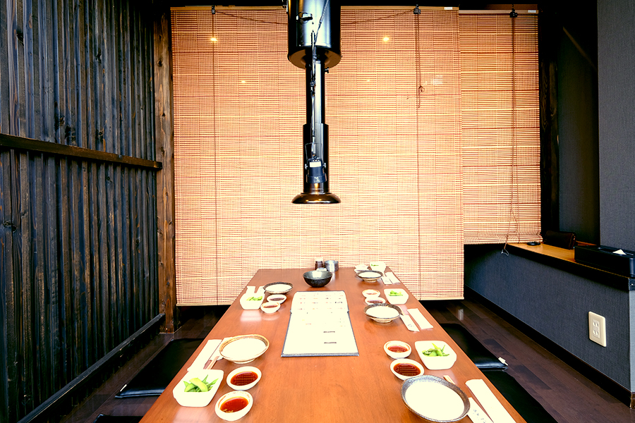 店内は半個室の座卓席に七輪と排煙フードを全席にご準備しております。落ち着いた雰囲気の個室なので、ご友人やご家族でのご宴会、デート、大切なご商談やご接待のお席にご利用いただければ幸いです。落ち着いた空間でごゆっくりと鶏料理を楽しんでください。